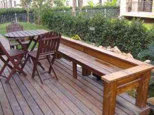 1、應注意防腐木材的吸水率。在室外環(huán)境中使用防腐木材時,木材可能因破水而膨脹,因此,在設計中好留有一定的空間,避免大面積的膨脹變形,特別是對于吸水率較高的木材,應留有較大的空間。