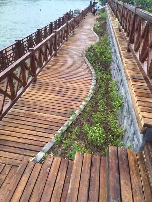 6、防腐木接觸潮濕土壤或親水效果尤為顯著,滿足戶外各種氣候環(huán)境中使用15-50年以上不變