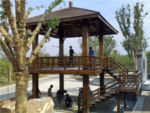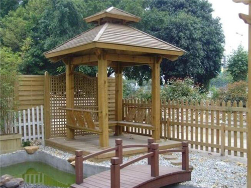 防腐木亭子具有體積不大、用料較少、設(shè)計(jì)靈活、建筑方便等特點(diǎn),很適合園林景觀布局的需要。防腐木亭子是在我國(guó)園林景觀綠化中運(yùn)用多的一種建筑形式。無(wú)倫是古典園林景觀,還是現(xiàn)代園林景觀中,都可以看到各種各樣豐富多彩的防腐木亭子,屹立于山岡之上;或依附在建筑之旁;或漂浮在水池之畔。以玲瓏美麗、豐富多樣的形象與園林景觀中的其他建筑、山水、綠化等相結(jié)合,構(gòu)成一幅幅生動(dòng)的畫(huà)圖。貴州防腐木亭子成了為園林景觀空間和自然山水增添美色的重要點(diǎn)綴建筑物。防腐木亭子的作用一方面是點(diǎn)綴園林景觀空間、提升環(huán)境層次,另一方面是解決人們?cè)诼糜涡蓍e中駐足休息,納涼避雨、眺望景色的需要。